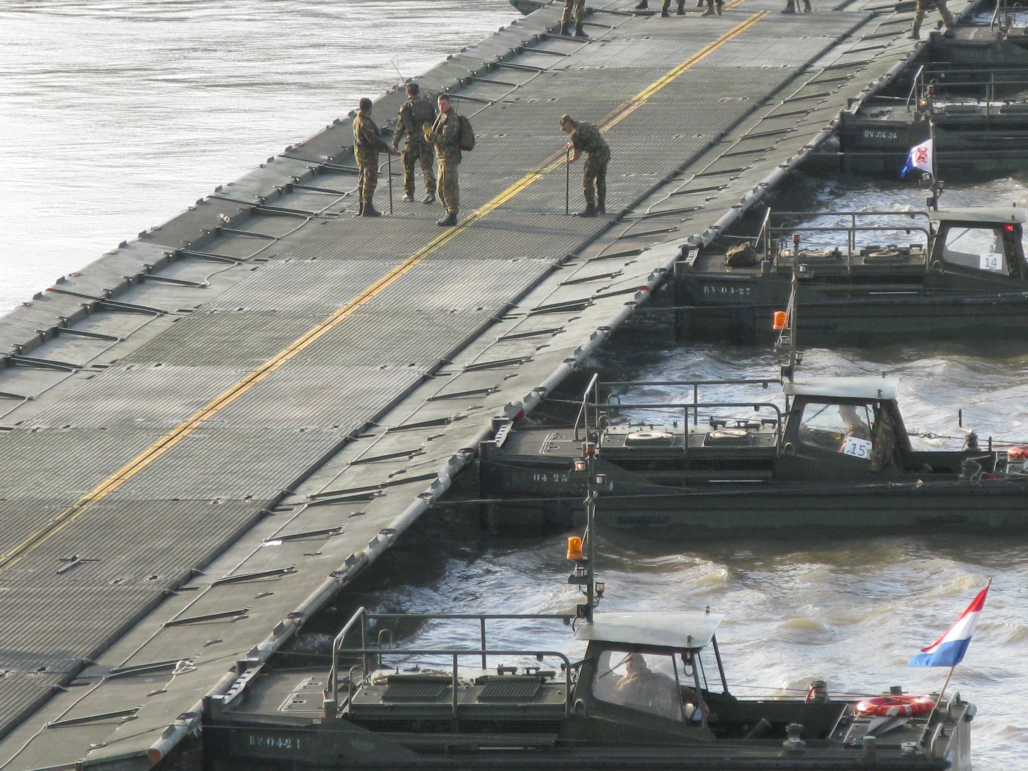 October 2 & 3, 2014, a pontoon will again bridge the 350 m wide river. This time, no need for haste and improvisation. Units of the Belgian an Dutch army have been exercising together for months now. And one year before its centenary, under a friendly September sun, they built a test pontoon. The watching Antwerpen inhabitants approved of it: “No, dearie, not today. Next year, you will cross the pontoon, surely!” No traces of fear this time, only high expectations.