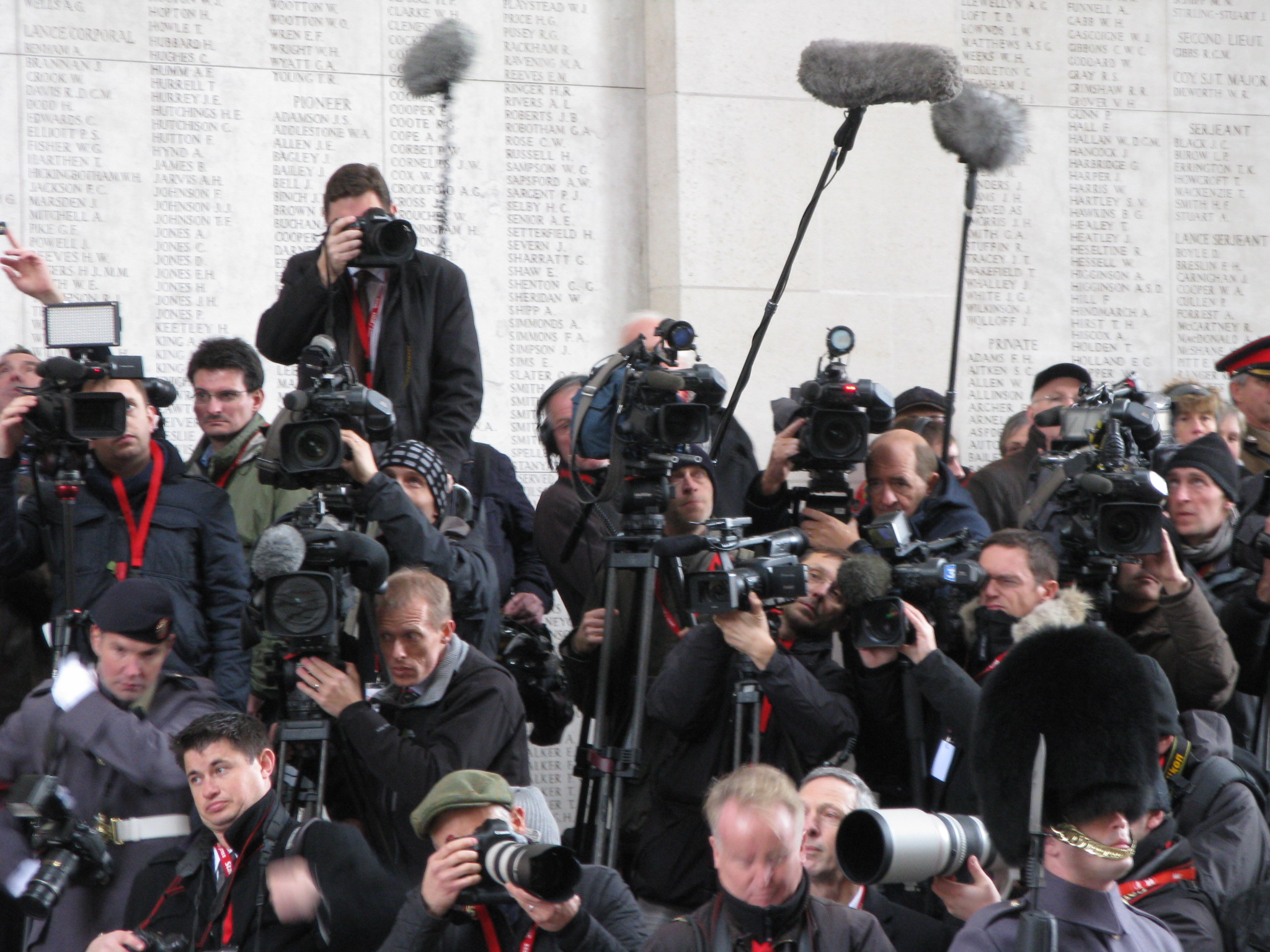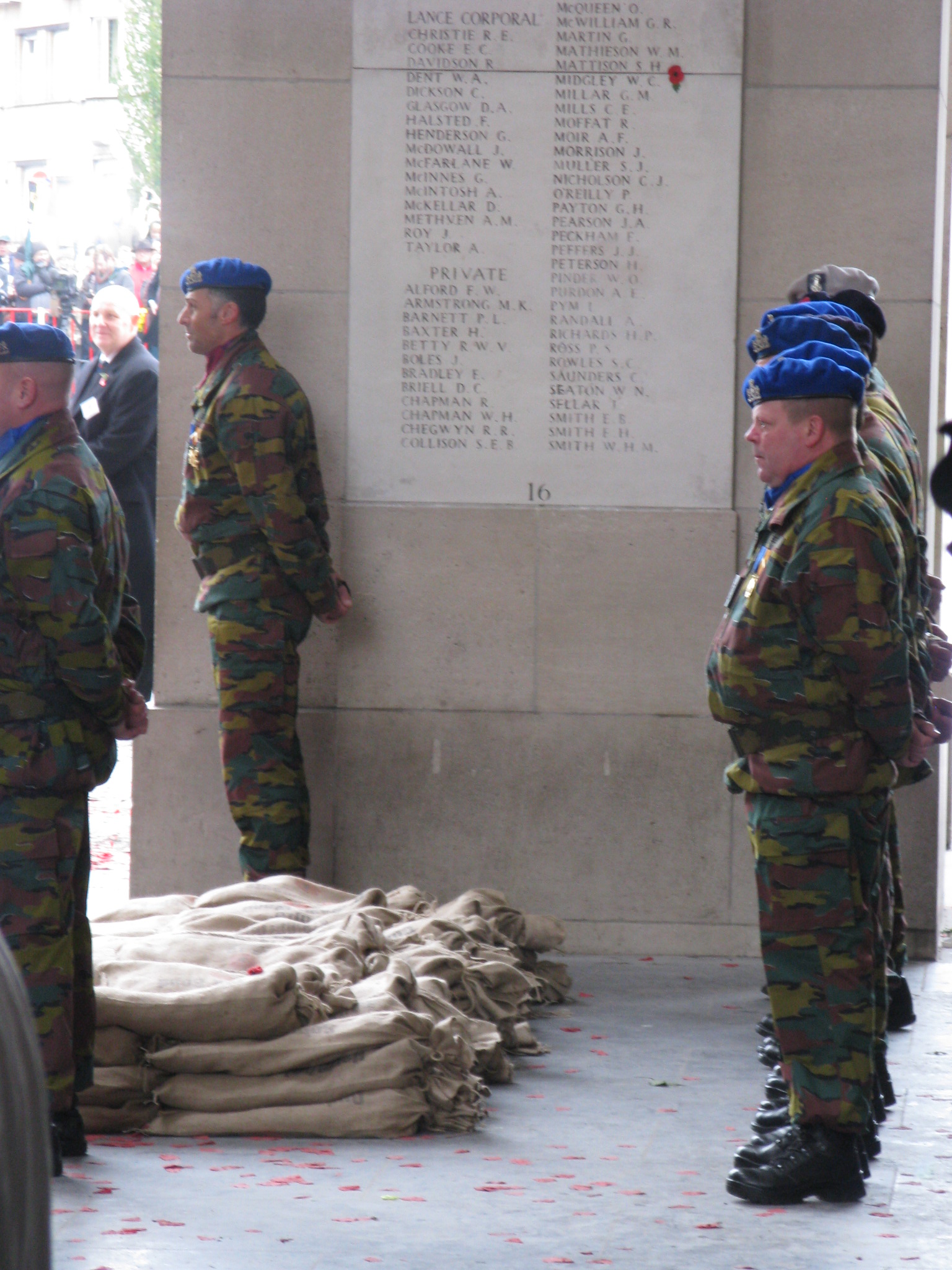 EN – It was cool and windy below the Menin Gate on November 11, but the sun was shining and everybody was present. Two Royal Highnesses, an unspecified number of ambassadors, army people of rank in spotless parade uniforms, a pack of press people. And the public, of course, and the youngsters. Especially the youngsters. This time, the annual armistice ceremony was theirs, too. The previous months Belgian school children had been collecting soil from WWI graveyards throughout Belgium. This soil was now solemnly transferred to British school youth, who will accompany it to London, where it will be mixed with the soil near the Wellington Barracks to feed a new Memorial Garden, a new Flanders Field.