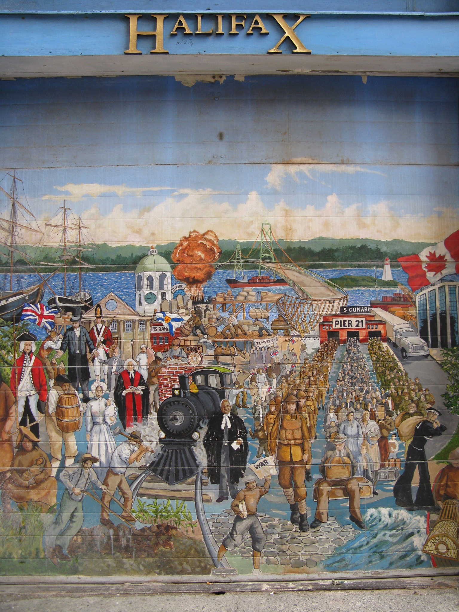 Het is niet zo moeilijk om in Halifax sporen te vinden van dit drama, binnenkort een eeuw oud. Tegenover de ingetogen St. Paul’s Church staat het monument van de gesneuvelden. Niet vergeten, zo te zien aan de kransen die er liggen. En breeddenkend: ‘Ook voor ‘40-‘45. ‘En ook voor de oorlog in Korea’. Terwijl ik een foto neem, kijken vier duiven op me neer. Vredesduiven. Stel ik me voor.