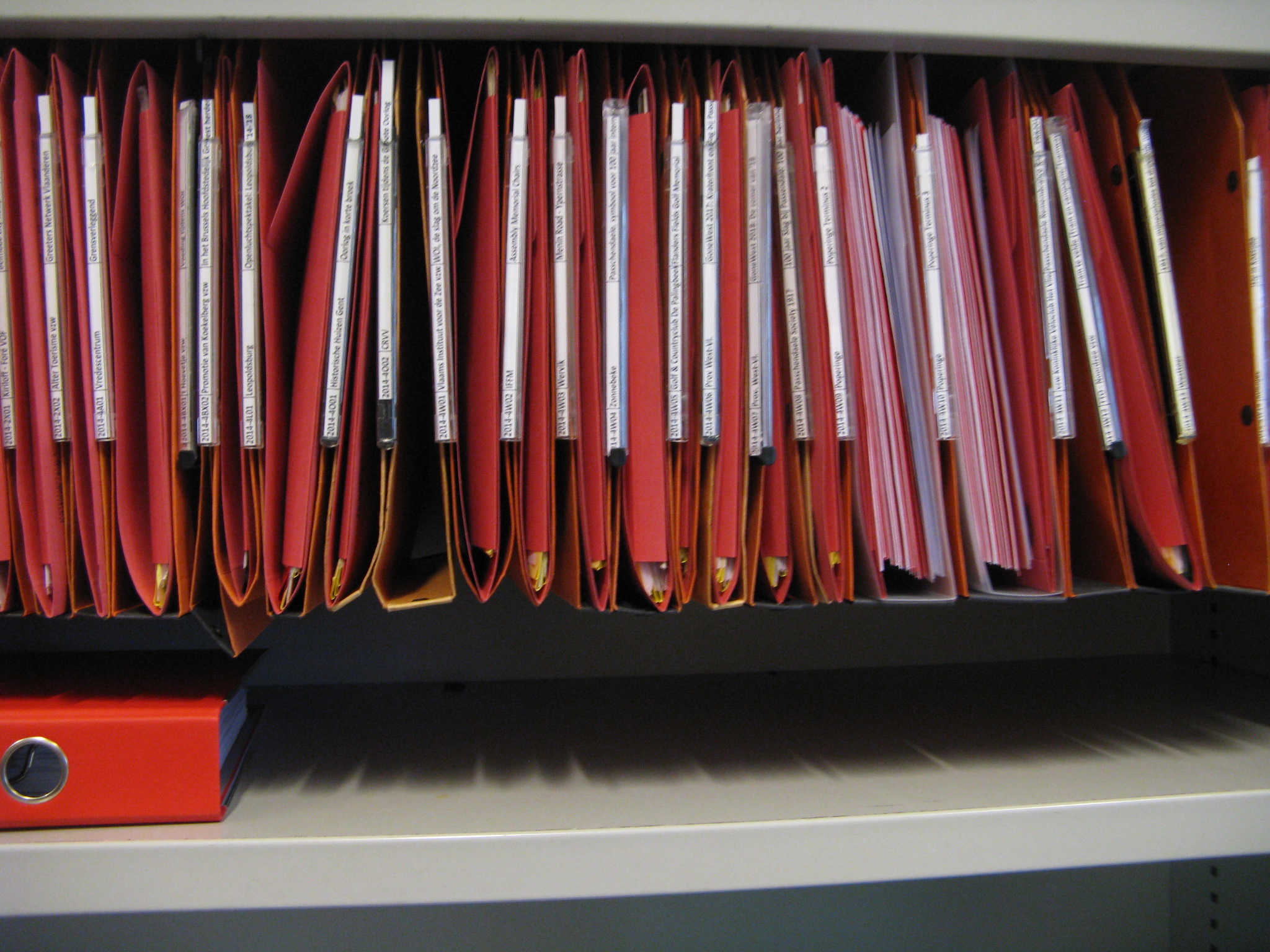 NL – Zo zien ze er uit. Mappen, zorgvuldig opgeborgen in Veerle’s kast. Wat ze eigenlijk zijn: 23 projectvoorstellen voor herdenkingsevenementen in Vlaanderen gedurende de jaren 2016 tot 2018. De oogst van een tweede projectoproep.
